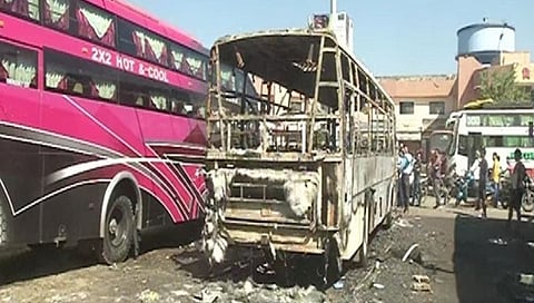 ಮಾಹಿತಿ ತಿಳಿದು ಪೊಲೀಸರು ಹಾಗೂ ಅಗ್ನಿಶಾಮಕ ದಳದ ಸಿಬ್ಬಂದಿ ಸ್ಥಳಕ್ಕೆ ಆಗಮಿಸಿ ಬೆಂಕಿ ನಂದಿಸಿದ್ದಾರೆ. ಈ ವೇಳೆ, ಬಸ್ನೊಳಗೆ ಎರಡು ಸುಟ್ಟ ದೇಹಗಳು ಪತ್ತೆಯಾಗಿವೆ.