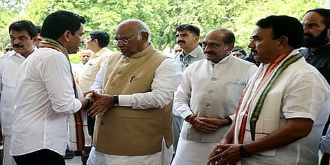 ನವದೆಹಲಿ: ಭಾರತ್ ರಾಷ್ಟ್ರ ಸಮಿತಿ ಸರ್ಕಾರದ ಮಾಜಿ ಸಚಿವ ಜೂಪಲ್ಲಿ ಕೃಷ್ಣರಾವ್, ಮಾಜಿ ಶಾಸಕ ಗುರುನಾಥ ರೆಡ್ಡಿ ಮತ್ತಿತರ ತೆಲಂಗಾಣದ ಕೆಲವು ನಾಯಕರು ಗುರುವಾರ ಎಐಸಿಸಿ ಅಧ್ಯಕ್ಷ ಮಲ್ಲಿಕಾರ್ಜುನ ಖರ್ಗೆ ಅವರ ಸಮ್ಮುಖದಲ್ಲಿ ಕಾಂಗ್ರೆಸ್ ಗೆ ಸೇರ್ಪಡೆಯಾದರು.