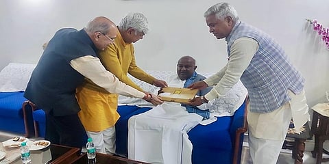 ಈ ಕುರಿತು ಸಾಮಾಜಿಕ ಜಾಲತಾಣ ಎಕ್ಸ್ ನಲ್ಲಿ ಮಾಹಿತಿ ಹಂಚಿಕೊಂಡಿರುವ ಹೆಚ್.ಡಿ. ದೇವೇಗೌಡ, ರಾಮ ಮಂದಿರ ಕಟ್ಟಡ ಅಭಿವೃದ್ಧಿ ಸಮಿತಿಯ ಅಧ್ಯಕ್ಷ ನೃಪೇಂದ್ರ ಮಿಶ್ರಾ, ಹಿರಿಯ ಆರ್ಎಸ್ಎಸ್ ನಾಯಕ ರಾಮ್ ಲಾಲ್ ಮತ್ತು ಹಿರಿಯ ವಿಎಚ್ಪಿ ನಾಯಕ ಅಲೋಕ್ ಕುಮಾರ್ ಅವರಿಂದು ನನ್ನನ್ನು ನವದೆಹಲಿಯ ನನ್ನ ನಿವಾಸದಲ್ಲಿ ಭೇಟಿಯಾದರು ಎಂದು ತಿಳಿಸಿದ್ದಾರೆ.