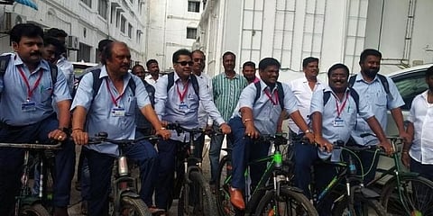 ಇಂದು ವಿಧಾನಸಭೆ ಅಧಿವೇಶನಕ್ಕೆ ಶಾಲಾ ಸಮವಸ್ತ್ರದಲ್ಲಿ ಸೈಕಲ್ಗಳಲ್ಲಿ ಆಗಮಿಸಿದ ಡಿಎಂಕೆ ಸದಸ್ಯರು ಮತ್ತು ಕಾಂಗ್ರೆಸ್ ಸದಸ್ಯರು ರಾಜ್ಯದ ಸ್ಥಾನಮಾನ ಕುರಿತು ಸರ್ಕಾರ ನಿರ್ಣಯ ಅಂಗೀಕರಿಸಬೇಕು ಎಂದುಒತ್ತಾಯಿಸಿದರು.