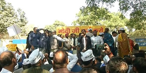 ನವದೆಹಲಿ: ಹಿಂಡೆನ್ಬರ್ಗ್ ಸಂಶೋಧನಾ ವರದಿಯಲ್ಲಿ ಅದಾನಿ ಗ್ರೂಪ್ ವಿರುದ್ಧ ವಿರುದ್ಧ ವಂಚನೆ ಆರೋಪ ಕೇಳಿಬಂದಿದ್ದು, ಆ ಕುರಿತು ತನಿಖೆ ನಡೆಸುವಂತೆ ಒತ್ತಾಯಿಸಿ ಆಮ್ ಆದ್ಮಿ ಪಕ್ಷ ಭಾನುವಾರ ದೆಹಲಿಯ ಭಾರತೀಯ ಜನತಾ ಪಕ್ಷದ ಪ್ರಧಾನ ಕಚೇರಿಯ ಹೊರಗೆ ಪ್ರತಿಭಟನೆ ನಡೆಸಿತು.