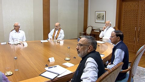 ಅಧಿಕಾರಿಗಳೊಂದಿಗೆ ಸಭೆ ನಡೆಸುತ್ತಿರುವ ಪ್ರಧಾನಿ ಮೋದಿ.