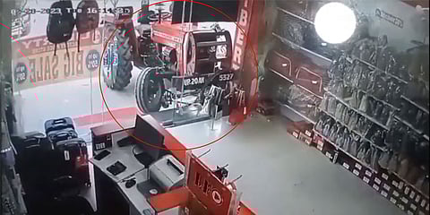 ಲಖನೌ: ಶೋರೂಂ ಹೊರಗೆ ನಿಂತಿದ್ದ ಟ್ರಾಕ್ಟರ್ ವೊಂದು ಚಾಲಕನಿಲ್ಲದೆ ಹೋದರೂ ಅಚಾನಕ್ಕಾಗಿ ಸ್ಟಾರ್ಟ್ ಆಗಿ ನೇರವಾಗಿ ಶೋ ರೂಂಗೆ ನುಗ್ಗಿ ಆತಂಕ ಸೃಷ್ಟಿಸಿದ್ದ ಘಟನೆ ಉತ್ತರ ಪ್ರದೇಶದಲ್ಲಿ ವರದಿಯಾಗಿದೆ.