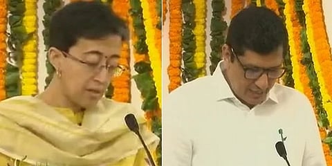 ಇಂದು ದೆಹಲಿಯ ನಡೆದ ಸರಳ ಸಮಾರಂಭದಲ್ಲಿ ದೆಹಲಿ ಲೆಫ್ಟಿನೆಂಟ್ ಗವರ್ನರ್ ವಿಕೆ ಸಕ್ಸೇನಾ ಅವರು ಅತಿಶಿ ಹಾಗೂ ಸೌರಭ್ ಭಾರದ್ವಾಜ್ ಅವರಿಗೆ ಪ್ರಮಾಣ ವಚನ ಬೋಧಿಸಿದರು. ಈ ವೇಳೆ ಮುಖ್ಯಮಂತ್ರಿ ಅರವಿಂದ್ ಕೇಜ್ರಿವಾಲ್ ಹಾಗೂ ದೆಹಲಿ ವಿಧಾನಸಭೆ ಪ್ರತಿಪಕ್ಷ ನಾಯಕ ರಾಮವೀರ್ ಸಿಂಗ್ ಅವರ ಉಪಸ್ಥಿತರಿದ್ದರು.