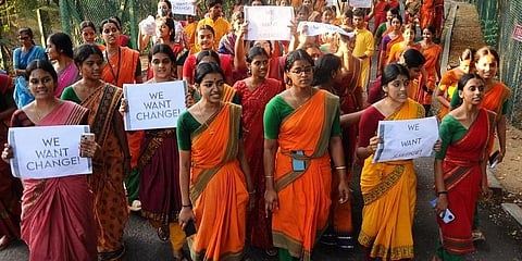 ಆರೋಪಿ ಶಿಕ್ಷಕನ ವಿರುದ್ಧ ತಕ್ಷಣವೇ ಕ್ರಮ ಕೈಗೊಳ್ಳಲು ಆಗ್ರಹಿಸಿ ಕ್ಯಾಂಪಸ್ ನಲ್ಲಿರುವ ಆಲದ ಮರದ ಕೆಳಗೆ ವಿದ್ಯಾರ್ಥಿಗಳು ಬೆಳಿಗ್ಗೆಯಿಂದ ಮೌನ ಪ್ರತಿಭಟನೆ ಕೈಗೊಂಡಿದ್ದರು. ಸಂಜೆಯ ನಂತರ ಕ್ಯಾಂಪಸ್ ನಿಂದ ತಿರುವನ್ಮಯೂರ್ ರಸ್ತೆವರೆಗೆ ವಿದ್ಯಾರ್ಥಿಗಳು ಪ್ರತಿಭಟನಾ ಮೆರವಣಿಗೆ ಕೈಗೊಂಡಿದ್ದರು.