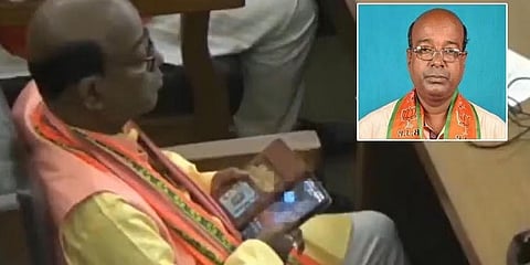 ತ್ರಿಪುರಾದ ಬಾಗ್ಬಾಸಾ ವಿಧಾನಸಭಾ ಕ್ಷೇತ್ರದ ಬಿಜೆಪಿ ಶಾಸಕ ಜದಾಬ್ ಲಾಲ್ ನಾಥ್ ವಿಡಿಯೋದಲ್ಲಿ ಕಾಣಿಸಿಕೊಂಡಿದ್ದಾರೆ. ಬಿಜೆಪಿ ಶಾಸಕ ಜದಾಬ್ ಲಾಲ್ ನಾಥ್ ತಮ್ಮ ಆಸನದಲ್ಲಿ ಕುಳಿತು ಮೊಬೈಲ್ ಫೋನ್ನಲ್ಲಿ ವಿಡಿಯೋ ವೀಕ್ಷಿಸುತ್ತಿರುವುದು ವಿಡಿಯೋದಲ್ಲಿ ಕಂಡುಬರುತ್ತದೆ. ಜದಬ್ ಲಾಲ್ ನಾಥ್ ಅವರು ತಮ್ಮ ಮೊಬೈಲ್ ಫೋನ್ನಲ್ಲಿ ವೀಡಿಯೊ ವೀಕ್ಷಿಸುತ್ತಿರುವುದು ಕ್ಯಾಮೆರಾದಲ್ಲಿ ಸೆರೆಯಾಗಿದೆ.
