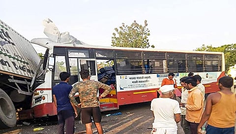 ಹಳೆಯ ಮುಂಬೈ-ನಾಗ್ಪುರ ಹೆದ್ದಾರಿಯಲ್ಲಿ ಸಿಂಧಖೇಡ್ ರಾಜಾ ಪಟ್ಟಣದ ಬಳಿ ಅಪಘಾತ ಸಂಭವಿಸಿದೆ. ಮಹಾರಾಷ್ಟ್ರ ರಾಜ್ಯ ರಸ್ತೆ ಸಾರಿಗೆ ಸಂಸ್ಥೆಗೆ (MSRTC) ಸೇರಿದ ಬಸ್ ಪುಣೆಯಿಂದ (ಬುಲ್ಧಾನ) ಮೆಹ್ಕರ್ ಕಡೆಗೆ ಹೋಗುತ್ತಿದ್ದಾಗ ಟ್ರಕ್‌ಗೆ ಡಿಕ್ಕಿ ಹೊಡೆದಿದೆ ಎಂದು ಅಧಿಕಾರಿ ತಿಳಿಸಿದ್ದಾರೆ.