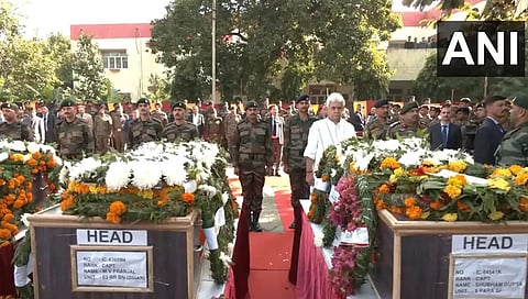 ರಜೌರಿ/ಜಮ್ಮು: ಜಮ್ಮು ಮತ್ತು ಕಾಶ್ಮೀರದ ರಜೌರಿ ಜಿಲ್ಲೆಯಲ್ಲಿ ಇತ್ತೀಚೆಗೆ ಉಗ್ರರೊಂದಿಗೆ ನಡೆದ ಎನ್ಕೌಂಟರ್ನಲ್ಲಿ ಹುತಾತ್ಮರಾದ ಐವರು ವೀರ ಯೋಧರಿಗೆ ಭಾರತೀಯ ಸೇನಾಪಡೆ ಹಾಗೂ ಪೊಲೀಸರು ಶುಕ್ರವಾರ ಶ್ರದ್ಧಾಂಜಲಿ ಸಲ್ಲಿಸಿದರು.