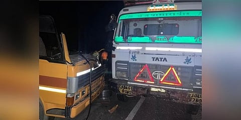 ಬಾರ್ಮರ್: ರಾಜಸ್ಥಾನದ ಬಾರ್ಮರ್ ಜಿಲ್ಲೆಯಲ್ಲಿ ಶನಿವಾರ ರಾತ್ರಿ ರಸ್ತೆಬದಿ ನಿಲ್ಲಿಸಿದ್ದ ಡಂಪರ್ ಟ್ರಕ್ಗೆ 27 ಮಂದಿ ಪ್ರಯಾಣಿಸುತ್ತಿದ್ದ ಬಸ್ ಡಿಕ್ಕಿ ಹೊಡೆದ ಪರಿಣಾಮ ಸರ್ಕಾರಿ ಶಾಲೆಯ ಪ್ರಾಂಶುಪಾಲರು ಮತ್ತು ವಿದ್ಯಾರ್ಥಿನಿಯೊಬ್ಬರು ಸಾವಿಗೀಡಾಗಿದ್ದಾರೆ ಎಂದು ಪೊಲೀಸರು ತಿಳಿಸಿದ್ದಾರೆ.