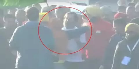 ಹೋಶಿಯಾರ್ಪುರ: ಮಂಗಳವಾರ ಇಲ್ಲಿ ನಡೆದ ಭಾರತ್ ಜೋಡೋ ಯಾತ್ರೆಯಲ್ಲಿ ವ್ಯಕ್ತಿಯೊಬ್ಬರು ರಾಹುಲ್ ಗಾಂಧಿಯತ್ತ ಧಾವಿಸಿ ಅವರನ್ನು ತಬ್ಬಿಕೊಳ್ಳಲು ಪ್ರಯತ್ನಿಸಿದರು. ಆದರೆ, ಅವರೊಂದಿಗೆ ಇದ್ದ ಇತರ ಕಾಂಗ್ರೆಸ್ ನಾಯಕರು ವ್ಯಕ್ತಿಯನ್ನು ತಳ್ಳಿದ್ದಾರೆ.