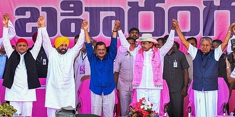 ಬಿಆರ್‌ಎಸ್ ಪಕ್ಷದ ರ್ಯಾಲಿಯಲ್ಲಿ ಅರವಿಂದ್ ಕೇಜ್ರಿವಾಲ್ (ದೆಹಲಿ), ಭಗವಂತ್ ಮಾನ್ (ಪಂಜಾಬ್), ಪಿ ವಿಜಯನ್ (ಕೇರಳ), ಅಖಿಲೇಶ್ ಯಾದವ್ ಅವರೊಂದಿಗೆ ತೆಲಂಗಾಣ ಸಿಎಂ ಕೆಸಿಆರ್.