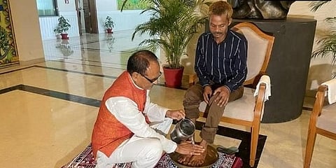 ಇದೀಗ ಮೂತ್ರ ವಿಸರ್ಜನೆ ಮಾಡಲಾಗಿದ್ದ ವ್ಯಕ್ತಿಯ ಪಾದವನ್ನು ಸಿಎಂ ಶಿವರಾಜ್ ಸಿಂಗ್ ಚೌಹಾಣ್ ತೊಳೆದಿದ್ದಾರೆ. ಬುಡಕಟ್ಟು ವ್ಯಕ್ತಿ ದಶಮತ್ ರಾವತ್ ಅವರನ್ನು ಸಿಎಂ ತಮ್ಮ ನಿವಾಸಕ್ಕೆ ಕರೆದೊಯ್ದು ಅವರ ಪಾದವನ್ನು ನೀರಿನಿಂದ ತೊಳೆದಿದ್ದಾರೆ.