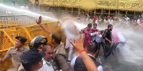 ಪ್ರತಿಭಟನಾನಿರತರನ್ನು ಚದುರಿಸಲು ಪೊಲೀಸ್ ಅಧಿಕಾರಿಗಳು ಜಲ ಫಿರಂಗಿ ಪ್ರಯೋಗಿಸಿದ ಪರಿಣಾಮ, ಕಾಂಗ್ರೆಸ್ ನ ಹಲವು ಕಾರ್ಯಕರ್ತರು ಹಾಗೂ ನಾಯಕರು ಗಾಯಗೊಂಡಿದ್ದಾರೆ.