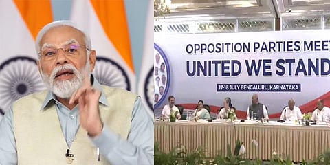 2024ರ ಲೋಕಸಭೆ ಚುನಾವಣೆಯಲ್ಲಿ ಬಿಜೆಪಿಯನ್ನು ಎದುರಿಸಲು ರಣತಂತ್ರ ರೂಪಿಸಲು ಬೆಂಗಳೂರಿನಲ್ಲಿ 26 ವಿರೋಧ ಪಕ್ಷಗಳು ಸಭೆ ಸೇರಿರುವ ಹಿನ್ನೆಲೆಯಲ್ಲಿ ಪ್ರಧಾನಿ ಮೋದಿ ಈ ವಾಗ್ದಾಳಿ ನಡೆಸಿದ್ದಾರೆ.