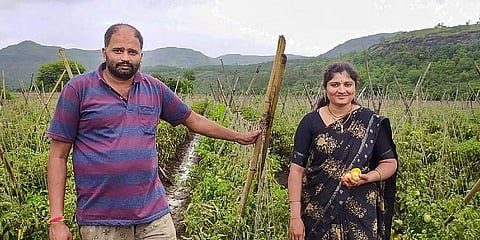 ರೈತ ಈಶ್ವರ್ ಗೇಕರ್ ತನ್ನ ಪತ್ನಿಯೊಂದಿಗೆ