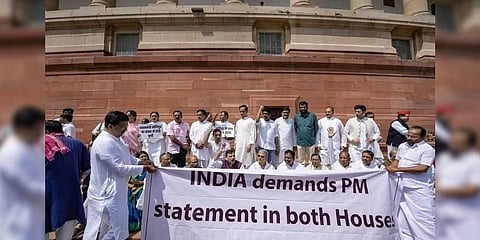 ಮಣಿಪುರ ಹಿಂಸಾಚಾರಕ್ಕೆ ಸಂಬಂಧಿಸಿದಂತೆ ಪ್ರಧಾನಿ ನರೇಂದ್ರ ಮೋದಿ ಅವರು ಮುಕ್ತ ಚರ್ಚೆಗೆ ಅವಕಾಶ ನೀಡಬೇಕು ಎಂಬ ಬೇಡಿಕೆಗೆ ಇಂಡಿಯಾ ಮೈತ್ರಿಕೂಟದ ಎಲ್ಲಾ ನಾಯಕರು ಅಚಲವಾಗಿದ್ದಾರೆ ಮತ್ತು ಅವರನ್ನು ಸಮಾಧಾನಪಡಿಸುವ ಸರ್ಕಾರದ ಎಲ್ಲಾ ಪ್ರಯತ್ನಗಳನ್ನು ಹಲವು ಪಕ್ಷಗಳು ತಿರಸ್ಕರಿಸಿವೆ ಎಂದು ಮೂಲಗಳು ತಿಳಿಸಿವೆ.