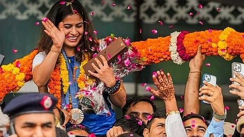 ಮನು ಭಾಕರ್ 12 ವರ್ಷಗಳ ಕೊರತೆಯನ್ನು ಕಂಚಿನ ಪದಕ ಗೆಲ್ಲುವ ಮೂಲಕ ನಿವಾರಿಸಿದ್ದಾರೆ, ಪ್ಯಾರಿಸ್ನಲ್ಲಿ ಅವಳಿ ವಿಜಯಗಳ ಮೊದಲು ಶೂಟಿಂಗ್ ಅನಿಶ್ಚಿತತೆಯು ಸಹಿಸಿಕೊಳ್ಳಬೇಕಾಗಿತ್ತು. ಪ್ಯಾರಿಸ್ ಗೇಮ್ಸ್ ನಲ್ಲಿ 10 ಮೀಟರ್ ಏರ್ ಪಿಸ್ತೂಲ್ ಸ್ಪರ್ಧೆಯಲ್ಲಿ ಕಂಚಿನ ಪದಕವನ್ನು ಮತ್ತು 10 ಮೀಟರ್ ಮಿಶ್ರ ಟೀಮ್ ಏರ್ ಪಿಸ್ತೂಲ್ ಸ್ಪರ್ಧೆಯಲ್ಲಿ ಸರಬ್ಜೋತ್ ಸಿಂಗ್ ಅವರೊಂದಿಗೆ ಮತ್ತೊಂದು ಕಂಚಿನ ಪದಕವನ್ನು ಪಡೆದರು.