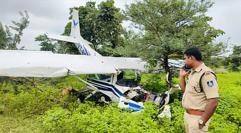 ಮಧ್ಯ ಪ್ರದೇಶದ ಗುನಾದಲ್ಲಿ ಈ ಘಟನೆ ನಡೆದಿದ್ದು, ಭಾನುವಾರ ಖಾಸಗಿ ವಿಮಾನಯಾನ ಅಕಾಡೆಮಿಯ ತರಬೇತಿ ವಿಮಾನವು ಏರ್ಸ್ಟ್ರಿಪ್ನಲ್ಲೇ ಪತನಗೊಂಡಿದೆ.
