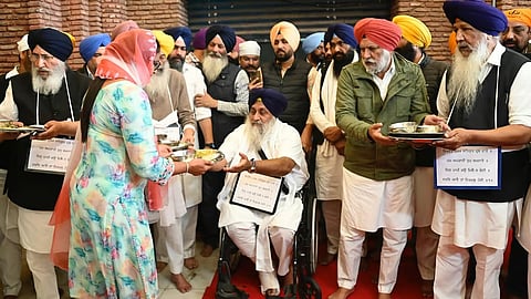 62 ವರ್ಷದ ಸುಖ್ಬೀರ್ ಸಿಂಗ್ ಬಾದಲ್ ಅವರು ಇಂದಿನಿಂದ ಕೈಯಲ್ಲಿ ಈಟಿಯೊಂದಿಗೆ ಸೈನಿಕನ ಸಮವಸ್ತ್ರದಲ್ಲಿ ಗಾಲಿಕುರ್ಚಿಯ ಮೇಲೆ ಕುಳಿತಿದ್ದರು. ಹಲವಾರು ಇತರ ಅಕಾಲಿ ನಾಯಕರು, ಹೆಚ್ಚಾಗಿ ಮಾಜಿ ಕ್ಯಾಬಿನೆಟ್ ಮಂತ್ರಿಗಳು, ದೇವಾಲಯದ ಆವರಣದಲ್ಲಿ ಶೌಚಾಲಯಗಳನ್ನು ಸ್ವಚ್ಛಗೊಳಿಸಿದರು ಮತ್ತು ನಂತರ ಲಂಗರ್ನಲ್ಲಿ ಪಾತ್ರೆಗಳನ್ನು ತೊಳೆಯುವ ಮೂಲಕ ತಮ್ಮ ಶಿಕ್ಷೆಯನ್ನು ಪೂರ್ಣಗೊಳಿಸಿದರು. ಅಕಾಲ್ ತಖ್ತ್ ಈ ಹಿಂದೆ ಬಾದಲ್ಗೆ ಶೌಚಾಲಯಗಳನ್ನು ಸ್ವಚ್ಛಗೊಳಿಸುವಂತೆ ಶಿಕ್ಷೆ ವಿಧಿಸಿತ್ತು. ಆದರೆ ಕಳೆದ ತಿಂಗಳು ಅವರು ಕಾಲು ಮುರಿದಿದ್ದನ್ನು ಪರಿಗಣಿಸಿ, ಅವರ ಶಿಕ್ಷೆಯನ್ನು ಮಾರ್ಪಡಿಸಲಾಗಿದೆ.
