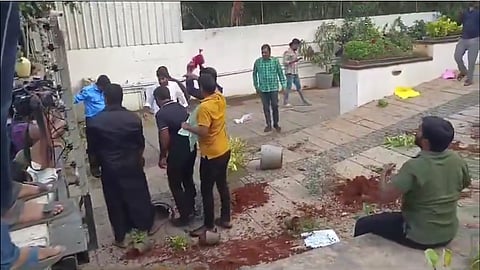 ಹೈದರಾಬಾದ್: ಪುಷ್ಪ 2 ಚಿತ್ರದ ಪ್ರದರ್ಶನ ವೇಳೆ ಹೈದರಾಬಾದ್ ನ ಸಂಧ್ಯಾ ಥಿಯೇಟರ್ ನಲ್ಲಿ ನಡೆದ ಕಾಲ್ತುಳಿತ ಪ್ರಕರಣಕ್ಕೆ ಸಂಬಂಧಿಸಿದಂತೆ ನಟ ಅಲ್ಲು ಅರ್ಜುನ್ ನಿವಾಸದ ಬಳಿ ಹೈಡ್ರಾಮಾ ನಡೆದಿದ್ದು, ಕೆಲವು ಅಪರಿಚಿತ ವ್ಯಕ್ತಿಗಳು ಮನೆ ಮೇಲೆ ಕಲ್ಲು ತೂರಾಟ ಮತ್ತು ಟೊಮೆಟೋ ಎಸೆದು ಆಕ್ರೋಶ ವ್ಯಕ್ತಪಡಿಸಿದ್ದಾರೆ.