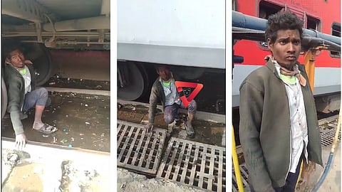 ಜಬಲ್ಪುರ ರೈಲು ನಿಲ್ದಾಣದ ಬಳಿ ರೋಲಿಂಗ್ ಪರೀಕ್ಷೆಯ ಸಮಯದಲ್ಲಿ ರೈಲಿನ ಸಿಬ್ಬಂದಿ S4 ಕೋಚ್ ಅಡಿಯಲ್ಲಿ ಪರಿಶೀಲಿಸಿದಾಗ ವ್ಯಕ್ತಿಯೊಬ್ಬ ಅಡಗಿರುವುದು ತಿಳಿಬಂದಿದೆ. ಆಘಾತಕ್ಕೊಳಗಾದ ನೌಕರರು ಕೂಡಲೇ ಸ್ಥಳಕ್ಕೆ ಆರ್ಪಿಎಫ್ಗೆ ಕರೆ ಮಾಡಿದ್ದು, ಸ್ಥಳಕ್ಕಾಗಮಿಸಿದ ಆರ್ ಪಿಎಫ್ ಸಿಬ್ಬಂದಿ ಆತನನ್ನು ಹೊರ ಬರುವಂತೆ ಹೇಳಿದ್ದಾರೆ. ಬಳಿಕ ಈ ವ್ಯಕ್ತಿ ನಿಧಾನವಾಗಿ ರೈಲಿನಡಿಯಿಂದ ಹೊರಬಂದಿದ್ದಾನೆ.