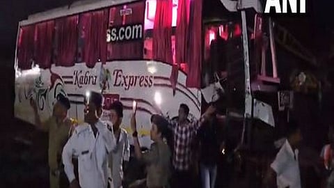 ಸಿಮೆಂಟ್ ಟ್ಯಾಂಕರ್ ಬಸ್ಗೆ ಡಿಕ್ಕಿ ಹೊಡೆದ ಪರಿಣಾಮ ಇಬ್ಬರು ಸ್ಥಳದಲ್ಲಿಯೇ ದುರ್ಮರಣವನ್ನಪ್ಪಿದ್ದಾರೆಂದು ಅಧಿಕಾರಿಗಳು ಹೇಳಿದ್ದಾರೆ.