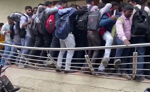 ಗುಜರಾತ್: ಗುಜರಾತ್ ನ ಭರೂಚ್ ನಲ್ಲಿ ಖಾಸಗಿ ಕಂಪನಿಯಲ್ಲಿ ಖಾಲಿ ಇದ್ದ 10 ಉದ್ಯೋಗಗಳಿಗೆ 1,800 ಆಕಾಂಕ್ಷಿಗಳು ಬಂದಿದ್ದ ಪರಿಣಾಮ ಜನ ದಟ್ಟಣೆ ತೀವ್ರಗೊಂಡು ಕಟ್ಟಡದಲ್ಲಿದ್ದ ಸ್ಟೀಲ್ ರೇಲಿಂಗ್ ಕುಸಿದಿದೆ.