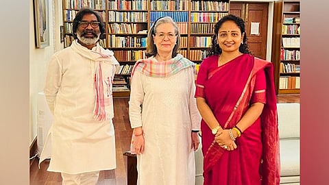 ಹೇಮಂತ್ ಸೊರೆನ್ ಅವರು ಇಂದು ತಮ್ಮ ಪತ್ನಿ ಕಲ್ಪನಾ ಸೊರೆನ್ ಅವರೊಂದಿಗೆ ದೆಹಲಿಯ 10 ಜನಪಥ್ ನಿವಾಸದಲ್ಲಿ ಸೋನಿಯಾ ಗಾಂಧಿ ಅವರನ್ನು ಭೇಟಿಯಾದರು.