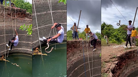 ನವದೆಹಲಿ: ಉರಗ ರಕ್ಷಕರೊಬ್ಬರು ಬಾವಿಗೆ ಬಿದ್ದಿದ್ದ ಹಾವೊಂದನ್ನು ತಮ್ಮ ಜೀವದ ಹಂಗು ತೊರೆದು ರಕ್ಷಣೆ ಮಾಡಿರುವ ವಿಡಿಯೋ ಇದೀಗ ವೈರಲ್ ಆಗುತ್ತಿದೆ.