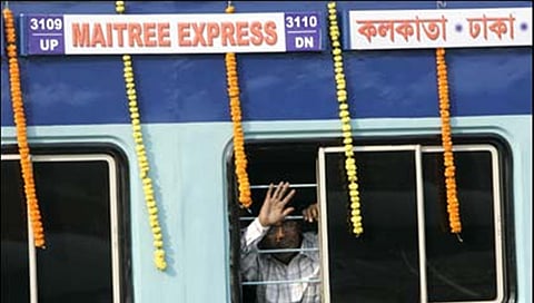 ಕೋಲ್ಕತ್ತಾ: ಕೋಲ್ಕತ್ತಾವನ್ನು ಬಾಂಗ್ಲಾದೇಶದ ರಾಜಧಾನಿ ಢಾಕಾದೊಂದಿಗೆ ಸಂಪರ್ಕಿಸುವ ಮೈತ್ರಿ ಎಕ್ಸ್ಪ್ರೆಸ್ ರೈಲು ಸೇವೆ ಮಂಗಳವಾರದವರೆಗೆ ಸ್ಥಗಿತಗೊಳಿಸಲಾಗಿದೆ ಎಂದು ಪೂರ್ವ ರೈಲ್ವೆಯು ಕಾರ್ಯಾಚರಣೆಯ ಕಾರಣಗಳನ್ನು ಉಲ್ಲೇಖಿಸಿ ತಿಳಿಸಿದೆ.