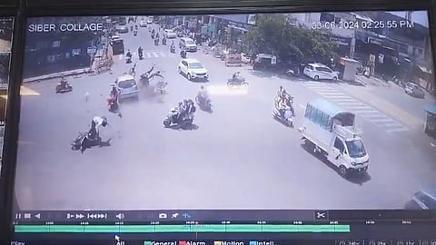 ಮಹಾರಾಷ್ಟ್ರದ ಕೊಲ್ಹಾಪುರದಲ್ಲಿ ಭಾನುವಾರ ಮಧ್ಯಾಹ್ನ ಈ ಘಟನೆ ನಡೆದಿದ್ದು ಸಿಸಿಟಿವಿ ಕ್ಯಾಮೆರಾದಲ್ಲಿ ವಿಡಿಯೋ ದಾಖಲಾಗಿದೆ. ಕೊಲ್ಹಾಪುರದ ಪ್ರಮುಖ ವೃತ್ತದಲ್ಲಿ ಈ ಘಟನೆ ನಡೆದಿದ್ದು, ವೃತ್ತಿದಲ್ಲಿ ಹಲವು ಬೈಕ್ ಗಳು ಚಲಿಸುತ್ತಿದ್ದಾಗ ವೇಗವಾಗಿ ಬಂದ ಕಾರೊಂದು ಏಕಾಏಕಿ ಬೈಕ್ ಗಳಿಗೆ ಢಿಕ್ಕಿಯಾಗಿದೆ.