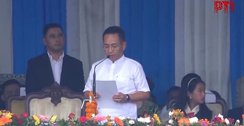 ರಾಜಧಾನಿ ಗ್ಯಾಂಗ್ಟಕ್ ನ ಪಾಲ್ಜೋರ್ ಸ್ಟೇಡಿಯಂನಲ್ಲಿ ನಡೆದ ಪ್ರಮಾಣ ವಚನ ಸಮಾರಂಭದಲ್ಲಿ ರಾಜ್ಯಪಾಲ ಲಕ್ಷ್ಮಣ್ ಪ್ರಸಾದ್ ಆಚಾರ್ಯ ಅವರು ಪ್ರೇಮ್ ಸಿಂಗ್ ತಮಾಂಗ್ ಮತ್ತು ಅವರ ಮಂತ್ರಿ ಮಂಡಲಕ್ಕೆ ಗೌಪ್ಯತಾ ಪ್ರಮಾಣ ವಚನ ಬೋಧಿಸಿದರು.