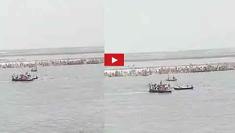 ಪಾಟ್ನಾ: 17 ಮಂದಿ ಪ್ರಯಾಣಿಸುತ್ತಿದ್ದ ದೋಣಿಯೊಂದು ಗಂಗಾ ನದಿಯಲ್ಲಿ ಪಲ್ಟಿಯಾಗಿದೆ. ಬಿಹಾರದ ರಾಜಧಾನಿ ಪಾಟ್ನಾದ ಬಾರ್ಹ್ ಪೊಲೀಸ್ ಠಾಣೆ ವ್ಯಾಪ್ತಿಯಲ್ಲಿ ಘಟನೆ ನಡೆದಿದ್ದು ಅದೃಷ್ಟವಶಾತ್ 11 ಮಂದಿ ಈಡಿ ದಡ ಸೇರಿದ್ದರೆ ಆರು ಮಂದಿ ನಾಪತ್ತೆಯಾಗಿದ್ದಾರೆ.