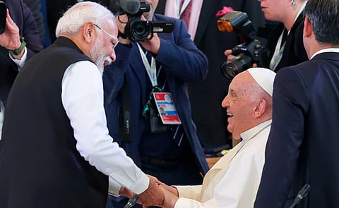 ಪ್ರಧಾನಿ ಮೋದಿ ಪೋಪ್ ಅವರನ್ನು ಭೇಟಿ ಮಾಡಿದ್ದ ಫೋಟೋ ಹಂಚಿಕೊಂಡಿದ್ದ ಕಾಂಗ್ರೆಸ್ ಪಕ್ಷ, ಪೋಪ್ ಗೆ ಕೊನೆಗೂ ದೇವರನ್ನು ನೋಡುವ ಅವಕಾಶ ಸಿಕ್ಕಿತು ಎಂದು ಹೇಳಿತ್ತು.