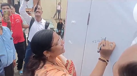 ಹೌದು...ಕೇಂದ್ರ ಮಹಿಳಾ ಮತ್ತು ಮಕ್ಕಳ ಅಭಿವೃದ್ಧಿ ರಾಜ್ಯ ಸಚಿವರಾಗಿರುವ ಸಾವಿತ್ರಿ ಠಾಕೂರ್ ಕೇಂದ್ರ ಸರ್ಕಾರದ ಜನಪ್ರಿಯ ಘೋಷಣೆಯಾದ 'ಬೇಟಿ ಬಚಾವೋ, ಬೇಟಿ ಪಢಾವೋ' ಸಾಲನ್ನು ಬಿಳಿ ಬೋರ್ಡ್ ಮೇಲೆ ಬರೆಯುವ ಪ್ರಯತ್ನದಲ್ಲಿ ತಪ್ಪಾಗಿ ಬರೆದು ಎಡವಟ್ಟು ಮಾಡಿಕೊಂಡಿದ್ದಾರೆ.