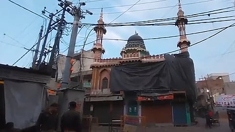 ಅಲಿಗಢ: ಹೋಳಿ ಹಿನ್ನೆಲೆಯಲ್ಲಿ ಅಲಿಘರ್ನ ಸೂಕ್ಷ್ಮ ಪ್ರದೇಶಗಳಲ್ಲಿರುವ ನಾಲ್ಕು ಮಸೀದಿಗಳಿಗೆ ಟಾರ್ಪಾಲ್ ಹಾಕಲಾಗಿದೆ.