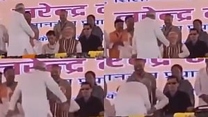 ವಿಡಿಯೋದಲ್ಲಿ ನಿತೀಶ್ ಕುಮಾರ್ ಅವರು ತಮ್ಮ ಕಾಲನ್ನು ಮುಟ್ಟಲು ಪ್ರಯತ್ನಿಸುತ್ತಿರುವಾಗ ಪ್ರಧಾನಿ ಮೋದಿ ಅದನ್ನು ತಡೆದಿದ್ದು, ಅವರ ಕೈ ಕುಲುಕಿದ್ದಾರೆ.