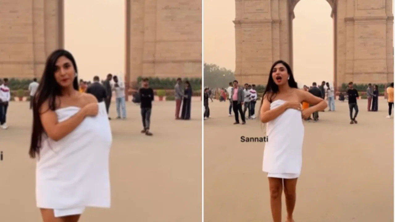 ಮೂಲಗಳ ಪ್ರಕಾರ ಕೋಲ್ಕತ್ತಾ ಮೂಲದ ಮಾಡೆಲ್ ಸನ್ನತಿ ಮಿತ್ರಾ (sannati__) ಎಂಬಾಕೆ ದೆಹಲಿಯ ಪ್ರವಾಸಿ ತಾಣ ಇಂಡಿಯಾ ಗೇಟ್ ಬಳಿ ಬರೀ ಟವೆಲ್ ಸುತ್ತಿ ರೀಲ್ಸ್ ಮಾಡಿದ್ದಾರೆ.