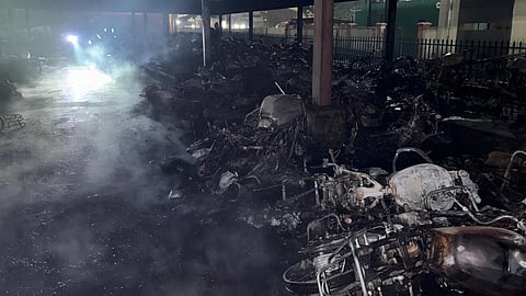 ವಾರಣಾಸಿ: ಉತ್ತರ ಪ್ರದೇಶದ ವಾರಣಾಸಿ ರೈಲು ನಿಲ್ದಾಣದಲ್ಲಿ ಭೀಕರ ಅಗ್ನಿ ದುರಂತ ಸಂಭವಿಸಿದ್ದು, ಪಾರ್ಕಿಂಗ್ ಪ್ರದೇಶದಲ್ಲಿ ಅಗ್ನಿ ಆಕಸ್ಮಕ ಸಂಭವಿಸಿ 150ಕ್ಕೂ ಹೆಚ್ಚು ದ್ವಿಚಕ್ರವಾಹನಗಳು ಸುಟ್ಟು ಭಸ್ಮವಾಗಿವೆ.