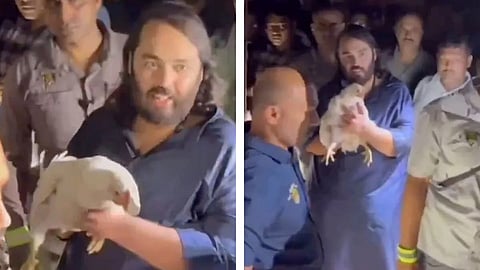 ವಧೆಗಾಗಿ (ಹತ್ಯೆ) ಕೋಳಿಗಳನ್ನು ಸಾಗಿಸುತ್ತಿದ್ದ ವಾಹನವನ್ನು ತಡೆಗಟ್ಟಿದ್ದ ಅನಂತ್ ಅಂಬಾನಿ, ಕೋಳಿ ಮಾಲೀಕರು ಮತ್ತು ವಾಹನ ಚಾಲಕನ ಜೊತೆ ಮಾತುಕತೆ ನಡೆಸಿದ್ದಾರೆ. ಕೋಳಿಗಳ ಬೆಲೆಗಿಂತ ಎರಡು ಪಟ್ಟು ಬೆಲೆ ನೀಡಿ 250 ಕೋಳಿಗಳನ್ನು ರಕ್ಷಿಸಿದ್ದಾರೆ.