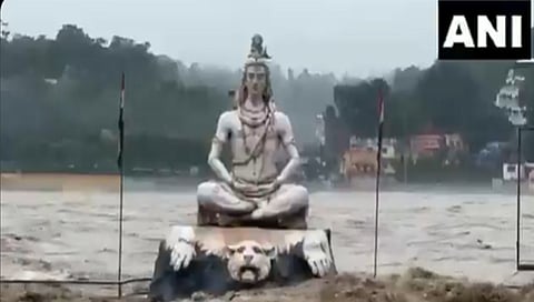 ಋಷಿಕೇಶ: ನಿರಂತರ ಭಾರೀ ಮಳೆಯಿಂದಾಗಿ ಉತ್ತರಾಖಂಡದ ಪವಿತ್ರ ಧಾರ್ಮಿಕ ಕ್ಷೇತ್ರ ಋಷಿಕೇಶದಲ್ಲಿ ಗಂಗಾ ನದಿಯ ನೀರಿನ ಮಟ್ಟ ಗಣನೀಯವಾಗಿ ಏರಿಕೆಯಾಗಿದೆ. ಪರಮಾರ್ಥ ನಿಕೇತನ ಆಶ್ರಮದ ಆರತಿ ಸ್ಥಳದಲ್ಲಿರುವ ಶಿವನ ವಿಗ್ರಹ ಮುಳುಗಡೆಯ ಭೀತಿಯಲ್ಲಿದೆ.