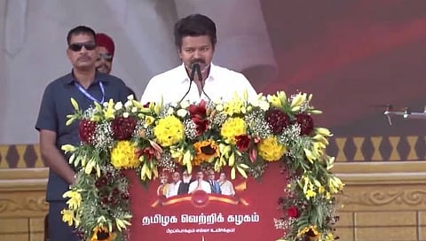 ಇಂದು ಮಧುರೈ ಜಿಲ್ಲೆಯ ಪರಪತಿಯಲ್ಲಿ ನಡೆದ ಪಕ್ಷದ ಎರಡನೇ ರಾಜ್ಯಮಟ್ಟದ ಸಮ್ಮೇಳನವನ್ನು ಉದ್ದೇಶಿಸಿ ಮಾತನಾಡಿದ ಟಿವಿಕೆ ಮುಖ್ಯಸ್ಥ, ತಮಿಳುನಾಡು ರಾಜಕೀಯದ ಮೂರು ಪ್ರಮುಖ ಪಕ್ಷಗಳಾದ ಡಿಎಂಕೆ, ಎಐಎಡಿಎಂಕೆ ಮತ್ತು ಬಿಜೆಪಿ ವಿರುದ್ಧ ತೀವ್ರ ವಾಗ್ದಾಳಿ ನಡೆಸಿದರು.