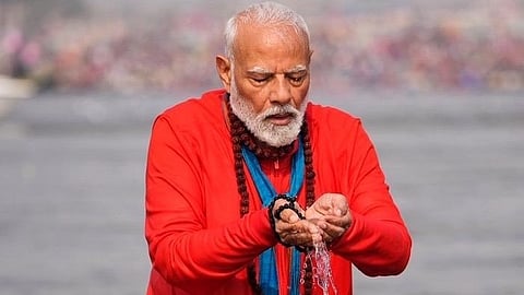 ಪ್ರಧಾನ ಮಂತ್ರಿ ನರೇಂದ್ರ ಮೋದಿ ಅವರು ಮಾಘ ಮಾಸದ ಅಷ್ಟಮಿ ದಿನವಾದ ಇಂದು ಬುಧವಾರ ಬೆಳಗ್ಗೆ ಮಹಾ ಕುಂಭ ಮೇಳ ನಡೆಯುತ್ತಿರುವ ಪ್ರಯಾಗರಾಜ್ನಲ್ಲಿ ಗಂಗಾ, ಯಮುನಾ ಮತ್ತು ಸರಸ್ವತಿ ನದಿಗಳ ಸಂಗಮದಲ್ಲಿ 'ಪವಿತ್ರ ಸ್ನಾನ' ಮಾಡಿದರು.