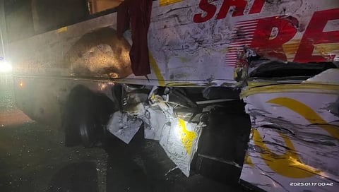 ತಿರುಪತಿಯಿಂದ ತಿರುಚಿರಾಪಳ್ಳಿಗೆ ತೆರಳುತ್ತಿದ್ದ ಖಾಸಗಿ ಬಸ್ ಹೆದ್ದಾರಿ ನಿರ್ಮಾಣಕ್ಕೆ ನಿಂತಿದ್ದ ಟಿಪ್ಪರ್ ಲಾರಿಗೆ ಡಿಕ್ಕಿ ಹೊಡೆಯುವುದನ್ನು ತಪ್ಪಿಸುವ ಭರದಲ್ಲಿ ಡಿವೈಡರ್ಗೆ ಡಿಕ್ಕಿ ಹೊಡೆದಿದೆ. ಬಳಿಕ ಪಲ್ಟಿಯಾಗಿದೆ. ಬಸ್ ರಸ್ತೆಗೆ ಅಡ್ಡಲಾಗಿ ಬಿದ್ದಿದ್ದರಿಂದ ಸಂಚಾರ ದಟ್ಟಣೆ ಉಂಟಾಗಿತ್ತು.