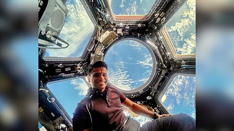 ಅಂತರರಾಷ್ಟ್ರೀಯ ಬಾಹ್ಯಾಕಾಶ ನಿಲ್ದಾಣದ (ISS) ಪ್ರಸಿದ್ಧ ಗುಮ್ಮಟದಿಂದ ಹೊರಗೆ ನೋಡುತ್ತಿರುವ ಫೋಟೋ ಇದಾಗಿದೆ. ಗ್ರೂಪ್ ಕ್ಯಾಪ್ಟನ್ ಶುಕ್ಲಾ ಜೂನ್ 26 ರಂದು ISS ನ್ನು ತಲುಪಿದ್ದರು ಮತ್ತು ಈಗ ಅವರಿಗೆ ನಿಯೋಜಿಸಲಾದ ವೈಜ್ಞಾನಿಕ ಕಾರ್ಯಗಳನ್ನು ಪೂರ್ಣಗೊಳಿಸುತ್ತಿದ್ದಾರೆ. ಅವರು ಈ ಹಿಂದೆ ಪ್ರಧಾನಿ ನರೇಂದ್ರ ಮೋದಿಯವರೊಂದಿಗೆ ಸಂವಾದ ನಡೆಸಿದ್ದು, ಬಾಹ್ಯಾಕಾಶದಿಂದ ಯಾವುದೇ ಗಡಿಗಳನ್ನು ನೋಡುತ್ತಿಲ್ಲ ಎಂದು ಹೇಳಿದ್ದರು.