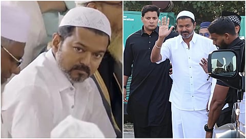 ಮುಸ್ಲಿಂ ಟೋಪಿ ಧರಿಸಿ, ಬಿಳಿ ಬಣ್ಣದ ಉಡುಪಿನಲ್ಲಿ ನಮಾಜ್ ಮಾಡಿದ ವಿಜಯ್, ಬಳಿಕ ರೋಜಾ ಉಪವಾಸ ಮುಗಿಸಿದ ಮುಸ್ಲಿಂ ಧಾರ್ಮಿಕ ಮುಖಂಡರು ಹಾಗೂ ಜನರೊಂದಿಗೆ ಇಫ್ತಾರ್ ಕೂಟದಲ್ಲಿ ಪಾಲ್ಗೊಂಡರು.