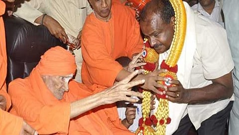 ಮುಖ್ಯಮಂತ್ರಿಯಾಗಿ ನಿನ್ನೆ ಪ್ರಮಾಣವಚನ ಸ್ವೀಕರಿಸಿದ ನಂತರ ಇಂದು ತುಮಕೂರಿನ ಸಿದ್ದಗಂಗಾ ಮಠಕ್ಕೆ ಭೇಟಿ ನೀಡಿದ ಅವರು ಶಿವಕುಮಾರ ಸ್ವಾಮೀಜಿಗಳನ್ನು ಭೇಟಿ ಮಾಡಿ ಆಶೀರ್ವಾದ ಪಡೆದರು.
