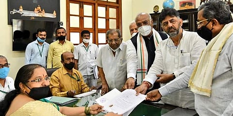ಬೆಂಗಳೂರು: ರಾಜ್ಯ ವಿಧಾನಸಭೆಯಿಂದ ರಾಜ್ಯಸಭೆಗೆ ಜೂನ್ 19 ರಂದು ನಡೆಯಲಿರುವ ಚುನಾವಣೆಗೆ ಕಾಂಗ್ರೆಸ್ ಅಭ್ಯರ್ಥಿಯಾಗಿ ಹಿರಿಯ ಮುಖಂಡ ಮಲ್ಲಿಕಾರ್ಜುನ ಖರ್ಗೆ ಅವರು ಸೋಮವಾರ ನಾಮಪತ್ರ ಸಲ್ಲಿಸಿದ್ದಾರೆ.