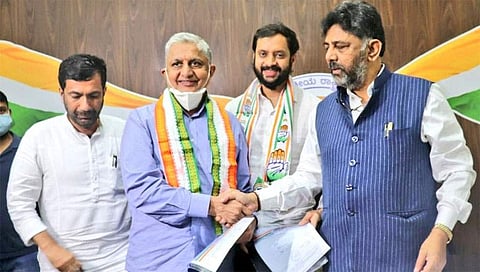 ಬೆಂಗಳೂರು: ವಿಧಾನ ಪರಿಷತ್ ಚುನಾವಣೆಗೆ ಕಾಂಗ್ರೆಸ್ ಪಕ್ಷ ತನ್ನ ಮೂರು ಅಭ್ಯರ್ಥಿಗಳ ಅಂತಿಮಗೊಳಿಸಿದ್ದು, ಕೆಪಿಸಿಸಿ ಅಧ್ಯಕ್ಷ ಡಿಕೆ ಶಿವಕುಮಾರ್ 'ಬಿ' ಫಾರಂ ವಿತರಿಸಿದರು.