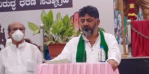 ಹಸಿರು ಶಾಲು ಹೊದ್ದುಕೊಂಡು ಕೆಪಿಸಿಸಿ ಅಧ್ಯಕ್ಷ ಡಿ.ಕೆ.ಶಿವಕುಮಾರ್ ಹಾಗೂ ವಿಪಕ್ಷ ನಾಯಕ ಸಿದ್ದರಾಮಯ್ಯ ನೇತೃತ್ವದಲ್ಲಿ ಕಾಂಗ್ರೆಸ್ ನಾಯಕರು ಪ್ರತಿಭಟನೆ ನಡೆಸಿ ಬಿಜೆಪಿ ಸರ್ಕಾರಗಳ ವಿರುದ್ಧ ತೀವ್ರ ವಾಗ್ದಾಳಿ ನಡೆಸಿದರು.